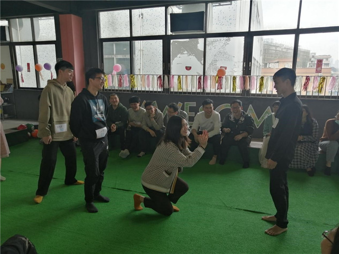 活動精心設(shè)計了自我介紹、互動游戲等豐富多彩的活動環(huán)節(jié),調(diào)動起62名青年男女們的熱情參與,在活動開始前主持人介紹了到場嘉賓、活動流程、進行隨機分組,組成的4個隊,每名隊員依次進行自我介紹相互認識,推選隊長,并設(shè)計出屬于自己的隊名“乘風(fēng)破浪”、“最襯打工人”、“黑色向日葵”、“龍馬精神”,4個小隊經(jīng)過接力拼圖、T恤氹氹轉(zhuǎn)、你演我猜、射擊保齡球等符合青年人的游戲,全場氣氛一度進入新的高潮,給青年男女們更多接觸和交流的機會,也充分展現(xiàn)青年們健康向上、富有活力的良好風(fēng)貌,“最襯打工人”隊依靠大家默契的配合取得勝利。中午以自助餐的形式大家圍坐在一起,輕松愉悅的用餐氛圍,使男女青年們很快熟絡(luò)起來,并增進了友誼。