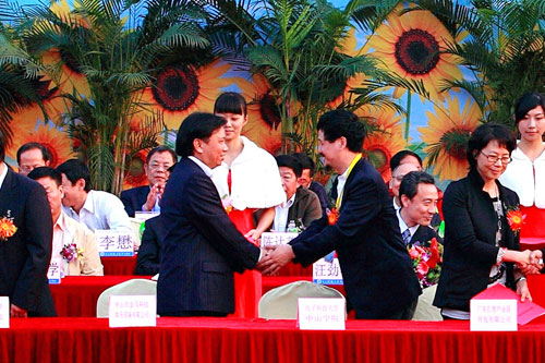 2011年11月12日,蓮峰山上金秋送爽花錦簇,電子科技大學(xué)中山學(xué)院在校實(shí)驗(yàn)樓前廣場隆重舉行了25周年校慶慶典大會,我司鄧志毅董事長受邀參加了本次活動,并在儀式上與電子科技大學(xué)中山學(xué)院簽訂了校企合作協(xié)議。