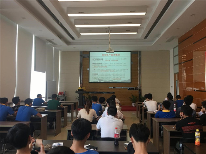 理論培訓(xùn)包括:人事行政部講授了公司的文化和規(guī)章制度;公司消防隊(duì)講授了消防安全的理論和自救與救援實(shí)操方法;公安派出所的警官為新員工帶來治安法制教育,提升員工法律法規(guī)意識(shí);安委會(huì)分享了安全生產(chǎn)案例,學(xué)習(xí)安全生產(chǎn)的應(yīng)急救援方法;精益部分享優(yōu)秀精益提案生動(dòng)地詮釋了精益生產(chǎn)。全體受訓(xùn)人員以筆試方式通過了理論培訓(xùn)考核。