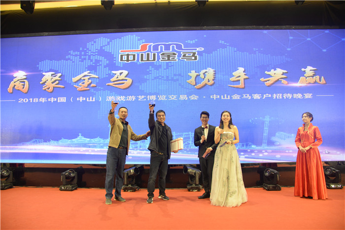 11月28日,時值第十一屆中國(中山)國際游戲游藝博覽交易會行業(yè)盛會召開之際,中山金馬公司在喜來登酒店隆重設(shè)宴,精心籌劃了一場“商聚金馬,攜手共贏”的主題晚宴,為遠(yuǎn)道而來的新老客商朋友、合作伙伴接風(fēng)洗塵,與行業(yè)同仁歡聚一堂,共襄盛會!