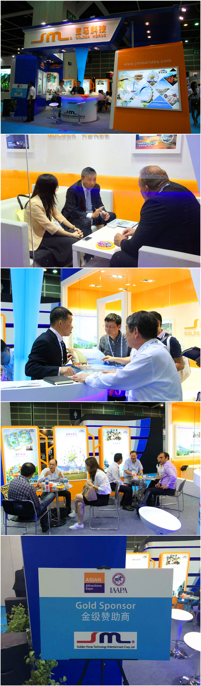 作為本屆亞洲展的金級(jí)贊助商,公司專注游樂創(chuàng)新、著力引領(lǐng)行業(yè)發(fā)展,特裝展位由公司外觀設(shè)計(jì)團(tuán)隊(duì)自主創(chuàng)作,成為亞洲展的一道亮麗的風(fēng)景線。在為期三天的展會(huì)中,金馬吸引了超過百位客商到場參觀、咨詢,展位中人流絡(luò)繹不絕,創(chuàng)意十足的產(chǎn)品、熱情周到的服務(wù)給客商留下了深刻的印象。