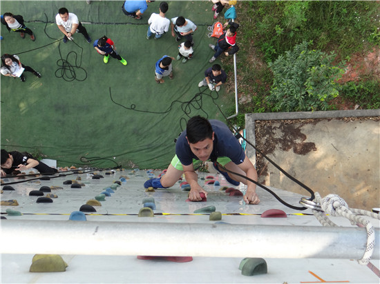 這是一場(chǎng)力量與速度的博弈,更是一次創(chuàng)新與文化的碰撞。延續(xù)團(tuán)結(jié)精神,設(shè)以攀巖接力賽形式進(jìn)行競(jìng)賽活動(dòng),近50名金馬年輕力量紛紛加入到這場(chǎng)空前的“巖壁芭蕾”盛宴。手指關(guān)節(jié)與腳下蹬步配合用力,巧妙選擇牢固支點(diǎn),克服“會(huì)當(dāng)臨絕頂,一覽眾山小”伴隨而至的恐懼,這項(xiàng)集健身、競(jìng)技、娛樂(lè)于一身,聚技巧性、驚險(xiǎn)性、觀賞性于一體的極限運(yùn)動(dòng),無(wú)論對(duì)金馬人個(gè)體或團(tuán)隊(duì),都是一種全新的磨練與體驗(yàn)。