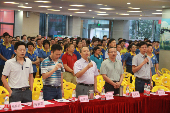 2016年7月30日,精益生產(chǎn)第三年度總結(jié)暨表彰大會在公司飯?zhí)寐≈嘏e行。公司高管劉喜旺總經(jīng)理、曾慶遠(yuǎn)副總經(jīng)理、高慶斌副總經(jīng)理、陳朝陽副總經(jīng)理和林澤釗副總經(jīng)理出席了會議并擔(dān)任評委。
