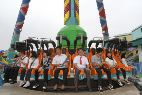 園區(qū)設有彈射式摩托過山車、影視與動感體驗相結合的激流勇進、160°弧形銀幕與裸眼3D技術相結合的野外探險等二十余款經典游樂體驗項目,采用大量的微縮景觀營造主題氛圍,色彩斑斕的鑲嵌在“步步高?梅溪新天地”的地面和天面,匯集主題性、文化性、娛樂性、休閑性、教育性于一體。開園當天,步步高集團董事長王填先生和國際鋼琴家郎朗繞有雅興到園親自體驗了野外探險、大擺錘等游樂設備。