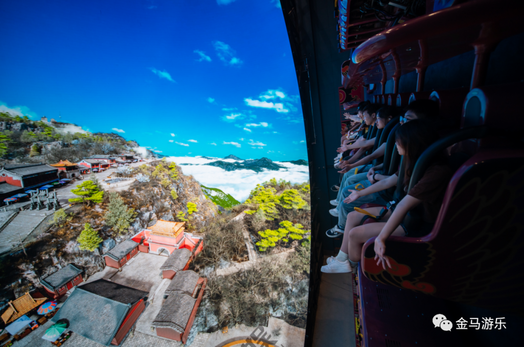 《飛越泰山》項(xiàng)目是目前全國最大的翻轉(zhuǎn)式飛行影院,2900㎡立體影院,可容納96人觀影。影視內(nèi)容以泰山及泰安地域文化為主旋律,通過多自由度動(dòng)感座椅與巨幕8K影視畫面結(jié)合,令游客仿佛乘坐飛行器置身高空凌空飛翔,從云海出發(fā),飛越泰山、泰安老街、天平湖景區(qū)等場景。飛越視角高低快慢,配合噴氣、噴水等特效,讓游客以虛擬沉浸方式飽覽五岳獨(dú)尊的壯麗巍峨。
