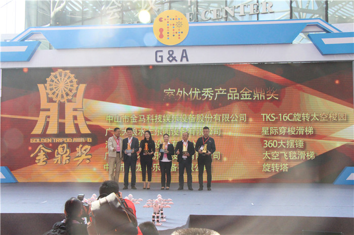作為中國游戲游藝行業(yè)的龍頭企業(yè),中山市金馬科技娛樂設備股份有限公司對本次盛會全程關注支持,并設以恢弘的展位布置應邀入駐參展。先是在游博會開幕典禮上,金馬公司新產(chǎn)品“TKS-16C旋轉太空梭”,以其先進且創(chuàng)新的技術獲得“室外優(yōu)秀產(chǎn)品金鼎獎”;而后迎合游博會歷年秉承的創(chuàng)新、與時俱進理念,金馬公司在展會上展示了GJT-60A觀景塔、ZB-72A轉轉杯、3D互動軌道車等創(chuàng)新產(chǎn)品,引起眾多客商及觀眾的駐步與贊賞,也被多家新聞媒體廣為報道。