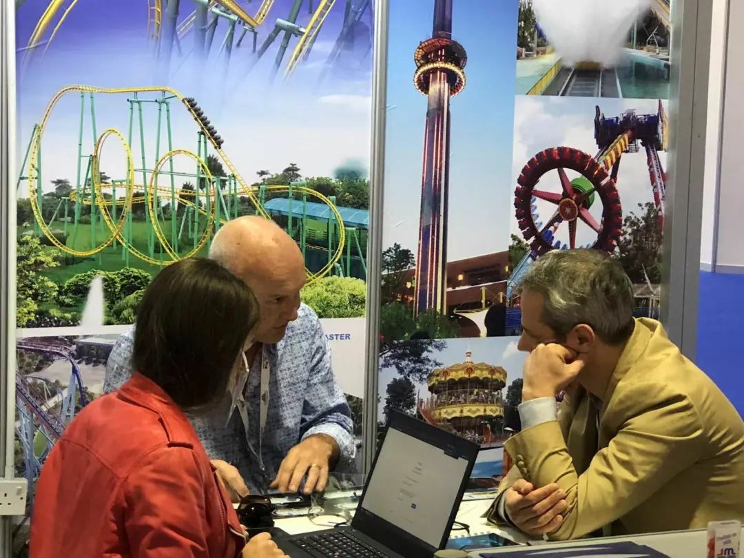 此次迪拜展是新冠疫情以來,金馬游樂首次參與的國際展會。作為國際頂級連鎖主題樂園的游樂設(shè)備供應(yīng)商,金馬游樂以“中國制造”的海外代言人形象亮相國際展會。此次展會,由金馬游樂歐洲團隊攜LSM電磁彈射過山車、百米摩天輪、影視飛行塔等多個系列創(chuàng)新產(chǎn)品亮相,展位吸引了中東、北非地區(qū)多國客商朋友前來咨詢交流、洽談合作,現(xiàn)場氣氛熱烈。