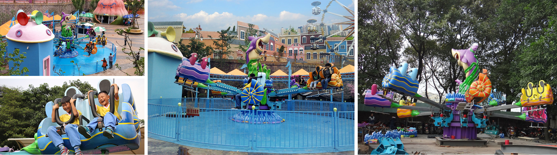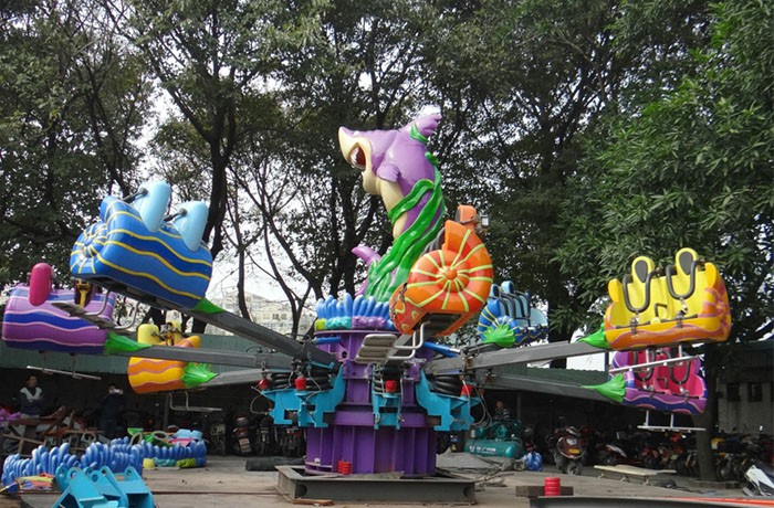 8個海螺迎著風,上下起伏,可以使乘客體驗到超重與失重的驚險與刺激,又能使人產(chǎn)生一種翩翩起舞的感覺以及身輕如燕,可以自由自在隨意跳躍的歡快心情。