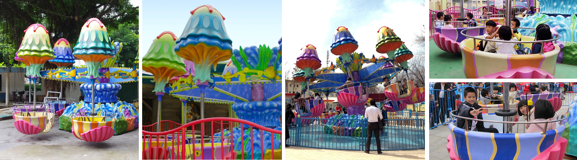 塔身徐徐上升,上轉(zhuǎn)盤部按一定傾角搖擺,座艙呈波浪狀蕩漾,座艙還可以由游客自行操作旋轉(zhuǎn),游客猶如在空中飛翔、飄蕩。設(shè)備以水母為主題,主要以家庭親子、少年兒童為服務(wù)對(duì)象,配以華麗的燈光,絢麗的外觀效果,和獨(dú)特的運(yùn)動(dòng)形式。