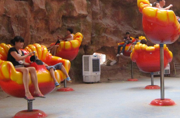 同時(shí)作升降、旋轉(zhuǎn)運(yùn)動(dòng)。整套設(shè)備由座艙、平臺(tái)、氣動(dòng)系統(tǒng)、電氣控制系統(tǒng)等所組成。蝴蝶造型的玻璃鋼座艙,栩栩如生。設(shè)備伴隨著明快的音樂(lè)有節(jié)奏地上升和下降,座艙可以乘坐二人,座艙的旋轉(zhuǎn)由乘客自由操作。同一時(shí)間場(chǎng)地里的座艙此起彼伏,猶如一片蝴蝶歡快地上下跳躍、舞動(dòng),使人有如置身于大舞臺(tái),盡情地翩翩起舞。