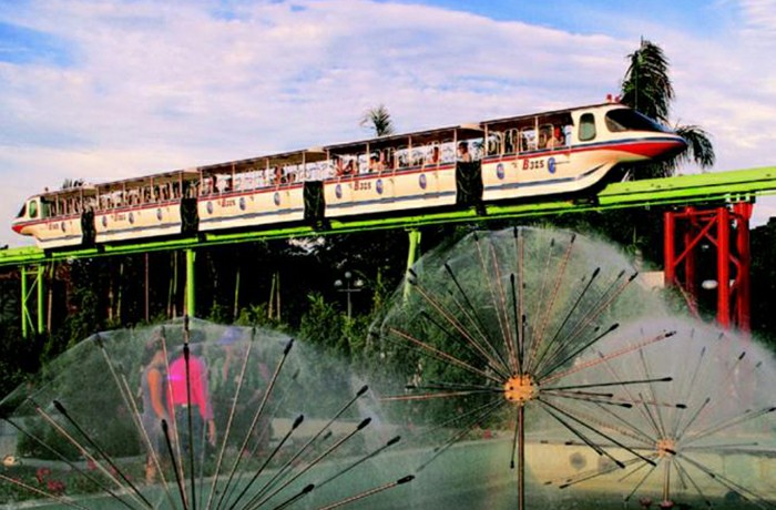 是沿架空單軌電力驅(qū)動(dòng)運(yùn)行的新型游覽車(chē)。它載客量大,運(yùn)行平穩(wěn),速度適中,老少咸宜。列車(chē)配以造型新穎的流線(xiàn)型玻璃鋼外殼及精致的裝飾,乘坐舒適,悅目可人,豪華大方,是觀覽大自然的理想游樂(lè)設(shè)備。