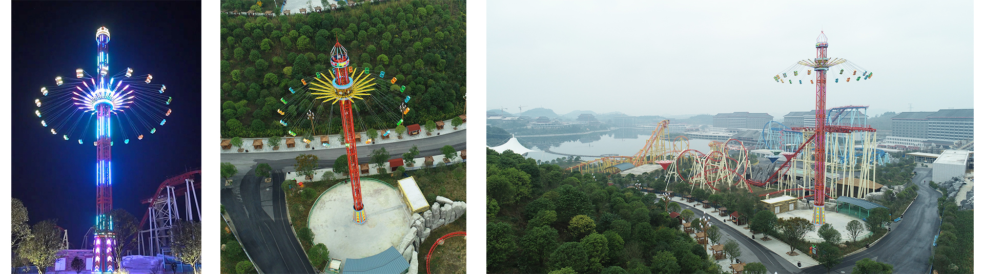 飛行塔設(shè)備由塔體、滑行架、吊椅三部分組成。獨有雙人座椅設(shè)計,隨著速率越來越快,座椅在半空中向外飄散,在整個游玩過程中乘客可充分享受高速飛行的暢快,刺激又浪漫。