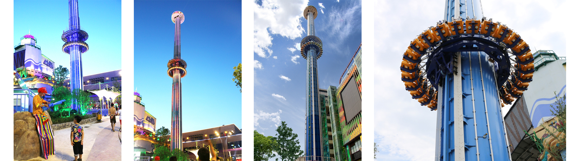 自由塔集成觀光與失重雙重體驗于一體。在自由塔上升過程中,游客可盡情觀賞周邊景色;在自由塔下降時,通過設(shè)備的加速與減速,給予游客異于尋常的加速度升降驚險感受。