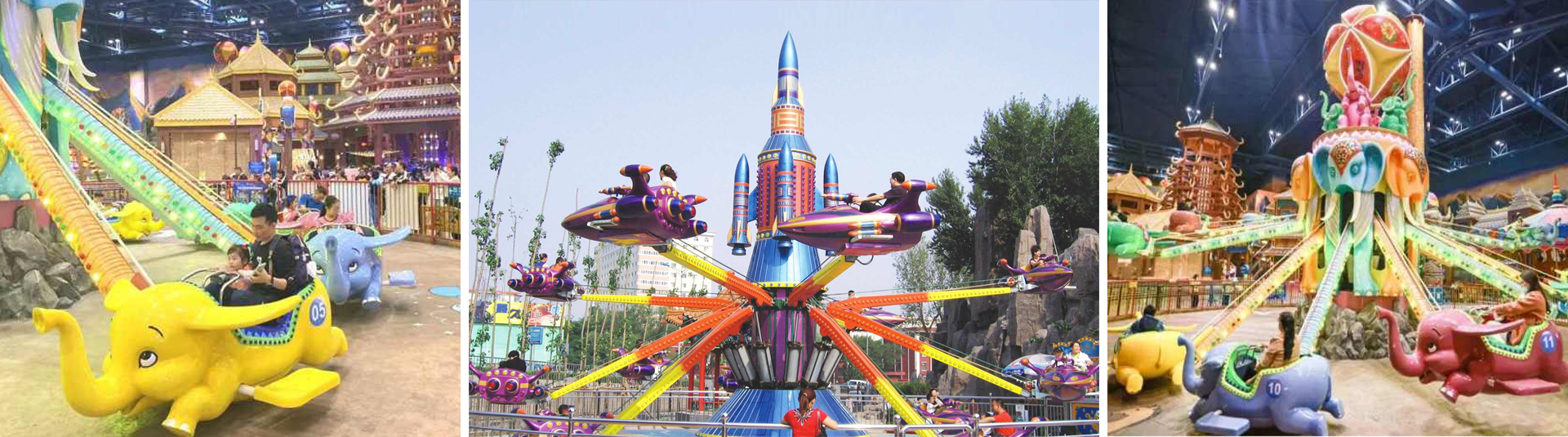 自控飛機集旋轉、升降運動形式于一體,乘客可通過搖桿自由控制座艙上下升降,猶如掌控飛機高低飛行??苹玫耐庥^裝飾、逼真刺激的空戰(zhàn)音響效果,使乘客在過程中體驗到自駕飛機的樂趣。