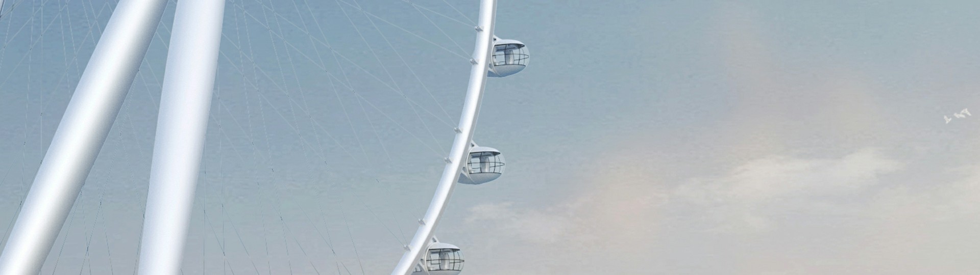 128米觀覽車是全球首創(chuàng)懸臂斜拉式立柱結(jié)構(gòu),造型宏偉壯觀;融合 LED大屏與炫彩燈效,專為地標項目打造。觀景艙為子主研發(fā)的全球最大的單環(huán)平衡滾艙,艙內(nèi)可進行主題餐廳、個性婚慶等娛樂場景搭建;720度全景座艙,為乘客提供全體無遮擋觀覽體驗。