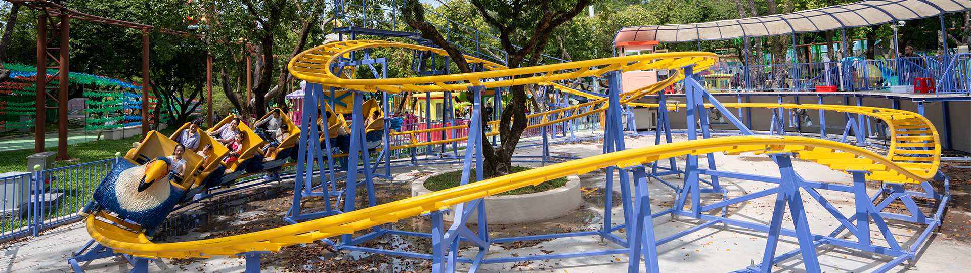 大嘴鳥過山車采用活潑獨(dú)特的巨鳥造型車體,集娛樂性和趣味性于一體,對(duì)兒童極具吸引力。設(shè)備占地面積小,且路軌站臺(tái)均采用組合式結(jié)構(gòu),無需制作基礎(chǔ),可實(shí)現(xiàn)快速拆卸。