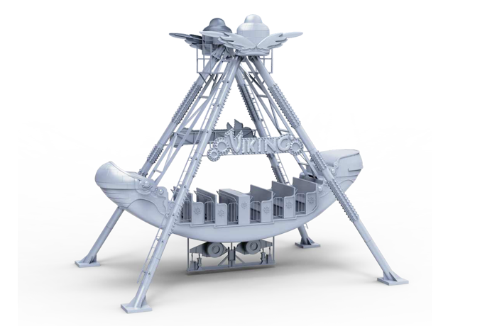 海盜船繞水平軸來(lái)回?cái)[動(dòng),模擬海盜乘風(fēng)出海的場(chǎng)景,交替而至的失重和超重感讓乘客盡情體驗(yàn)搖擺的樂(lè)趣。6排座椅,承載24人。