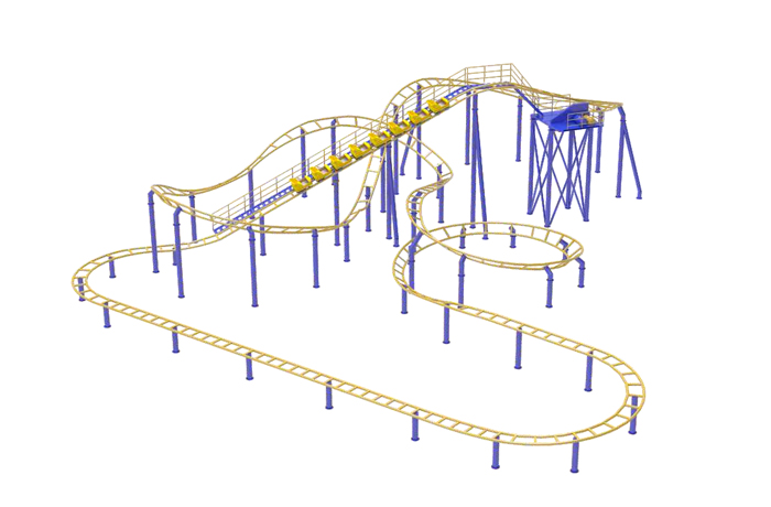 家庭過(guò)山車由列車、軌道、立柱、提升系統(tǒng)、推車裝置系統(tǒng)、制動(dòng)系統(tǒng)、氣動(dòng)系統(tǒng)、控制系統(tǒng)等部分組成。兩列車體造型小巧玲瓏,親子氛圍濃厚,是親子主題樂(lè)園的必選設(shè)備。