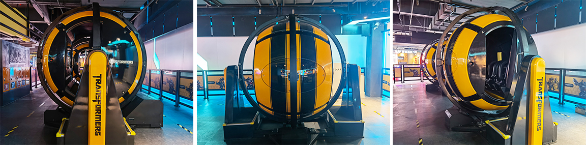 360滾艙是新型交互式動感體驗項目。乘客進入球形座艙,壓桿壓好后,酷炫的座艙配合艙內(nèi)影視內(nèi)容繞X軸、Z軸在360°范圍內(nèi)做旋轉(zhuǎn)動作,讓乘客置身于超感官視覺體驗中
