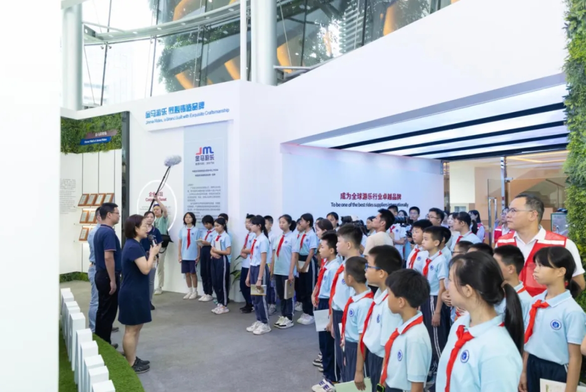 活動期間,中國特種設備檢測研究院游樂設施與客運索道專業(yè)人員、中山市游戲游藝行業(yè)協(xié)會秘書長雷嘉詠帶領中山市港口鎮(zhèn)中心小學學生到訪金馬游樂開展了實地參觀。