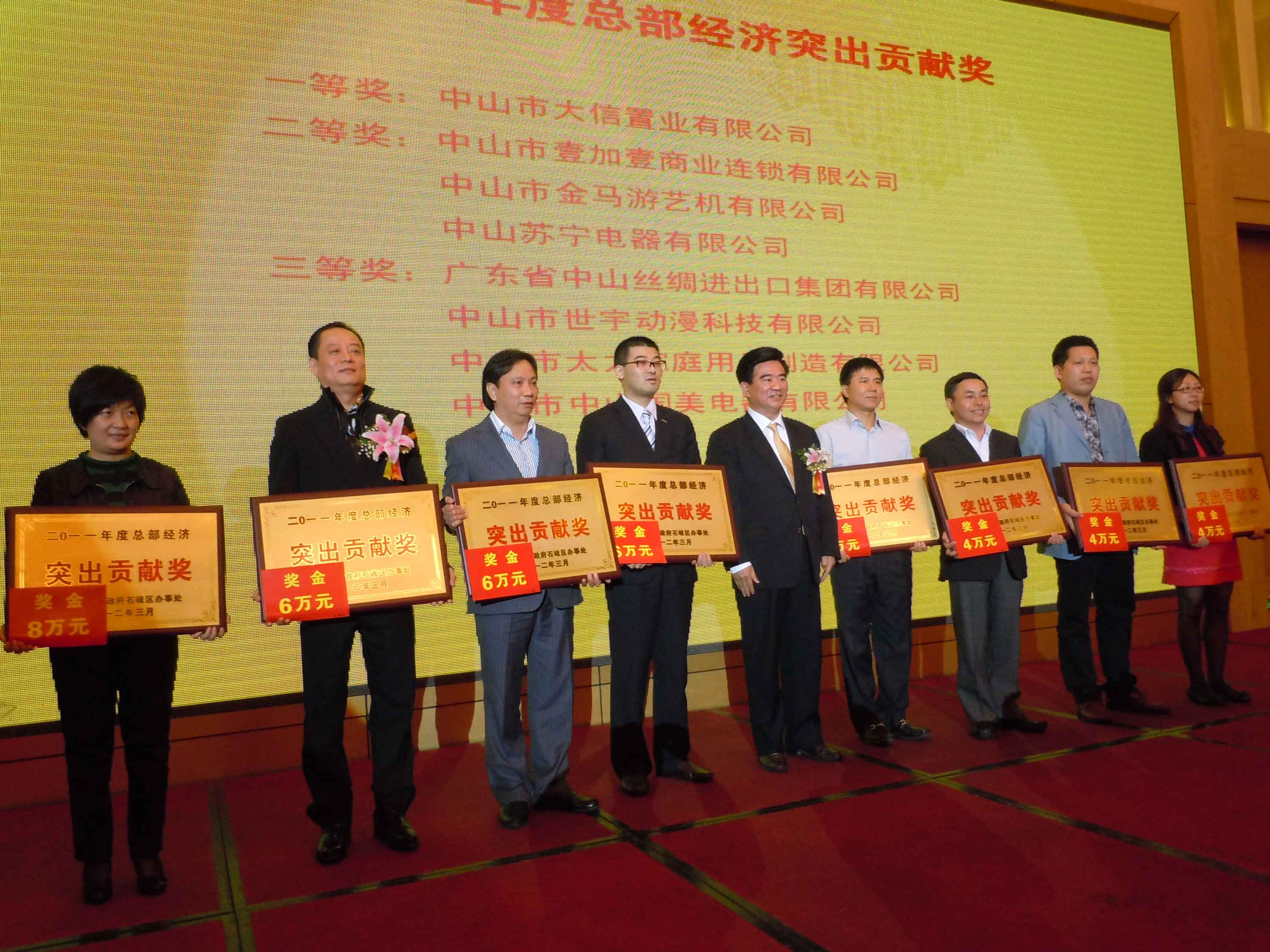 晚會(huì)上,石岐區(qū)辦事處為全區(qū)經(jīng)濟(jì)發(fā)展作出突出貢獻(xiàn)的42家企業(yè)及協(xié)會(huì)共計(jì)54個(gè)項(xiàng)目進(jìn)行了通報(bào)表彰。在過(guò)去一年里,我司著力推進(jìn)產(chǎn)業(yè)轉(zhuǎn)型升級(jí),向高科技4D動(dòng)漫影視娛樂(lè)項(xiàng)目延伸,以科技創(chuàng)新帶動(dòng)發(fā)展,為區(qū)內(nèi)經(jīng)濟(jì)騰飛作出了突出貢獻(xiàn),受到了區(qū)辦事處的肯定與嘉許,榮獲“二〇一一年度總部經(jīng)濟(jì)突出貢獻(xiàn)獎(jiǎng)”、“二〇一一年度企業(yè)自主創(chuàng)新及科學(xué)技術(shù)獎(jiǎng)”、“二〇一一年度企業(yè)黨建促發(fā)展先進(jìn)獎(jiǎng)”等三大獎(jiǎng)項(xiàng),共獲得了石岐區(qū)10萬(wàn)元的獎(jiǎng)金獎(jiǎng)勵(lì)。鄧志毅董事長(zhǎng)、曾慶遠(yuǎn)副總經(jīng)理及楊焯彬書記分別代表公司上臺(tái)領(lǐng)獎(jiǎng)。